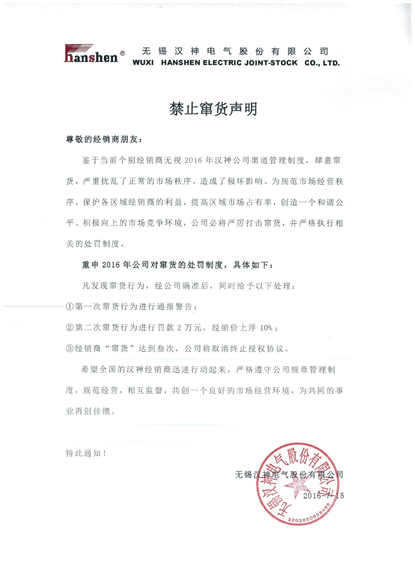 | 禁止竄貨聲明 |