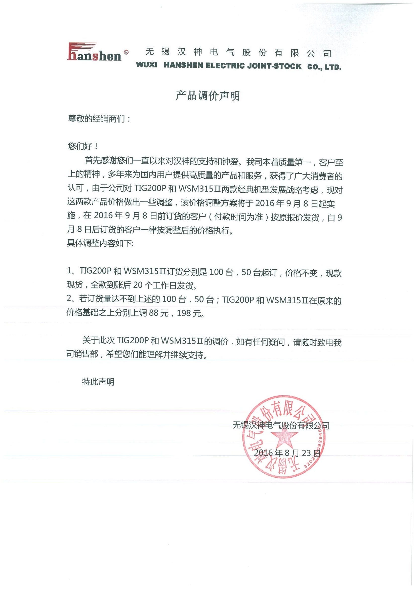 | 產(chǎn)品調(diào)價(jià)聲明 |