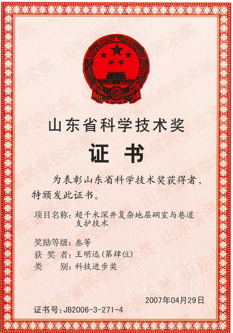 山東省科學(xué)技術(shù)獎(jiǎng)三等獎(jiǎng)